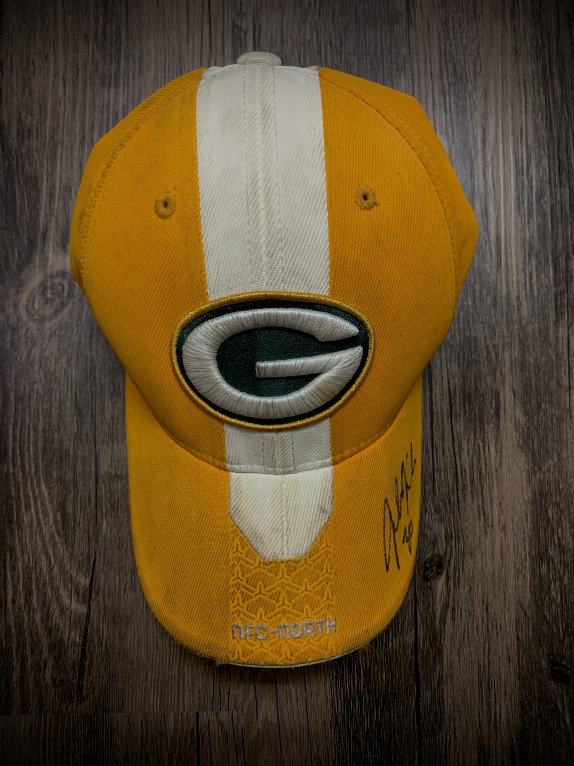 This item is a used Green Bay Packers sideline cap autographed by former Pro-Bowl fullback, John Kuhn. It was signed at the 2010 Packers Fan Fest. It is slightly dirty from wear and tear however the autograph is in great condition.