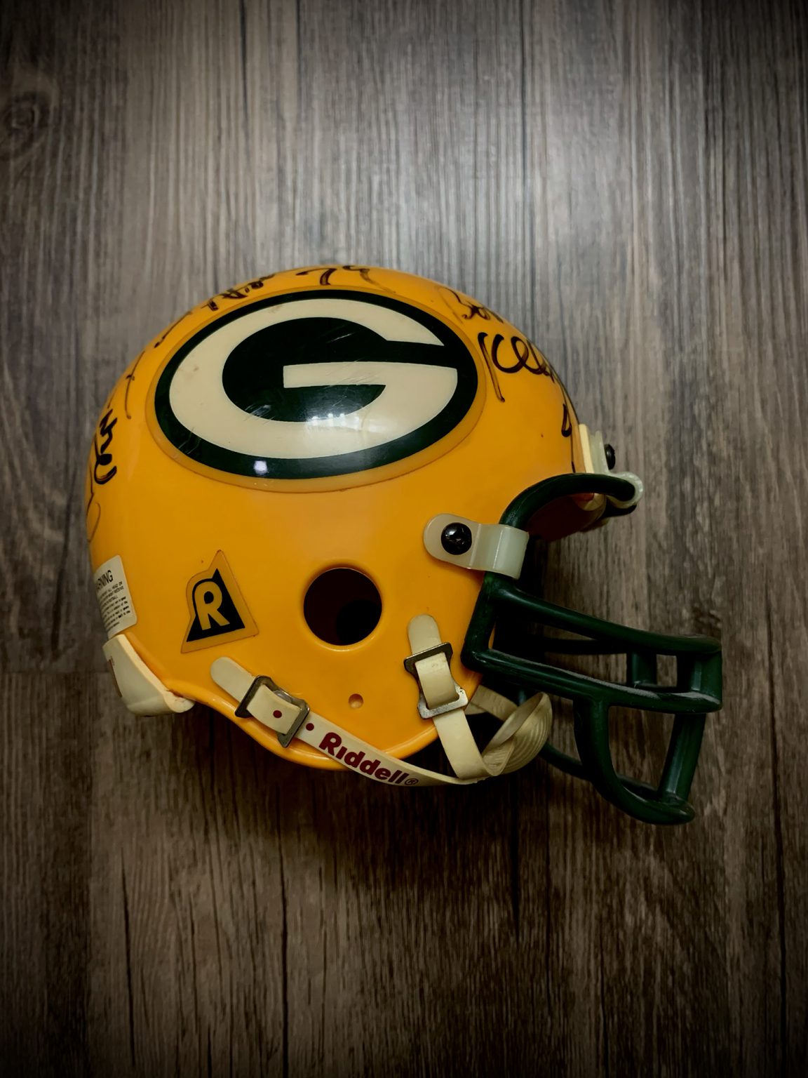 This is a piece that I was gifted by a friend who was not a Packers fan. I am unaware of the origin of the helmet or the autographs on the helmet however it is still a cool piece to have for a man cave.